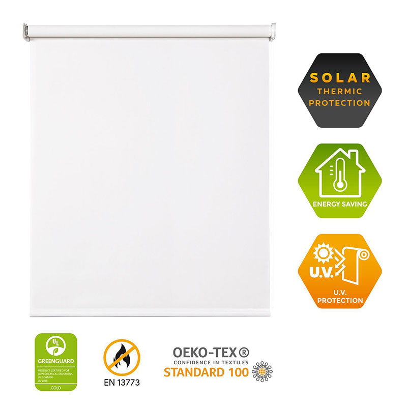 Estor enrollable cuyo tejido técnico, además de una atractiva estética moderna, proporciona numerosas cualidades que lo convierten en una solución versátil para cualquier estancia. Filtra la entrada de luz sin perder la vista exterior. Protege de los rayos UV. Ahorra energía. Asegura una gran duración en el tiempo, no atrae el polvo y tiene una gran resistencia del color.