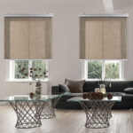 Serie platinum. Estor enrotllable con tejido texture color marrón.